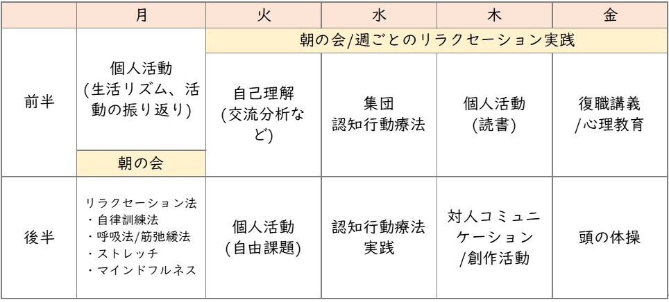 当院の心理的ケアを目的としたリワーク(ショートケア)の特徴
